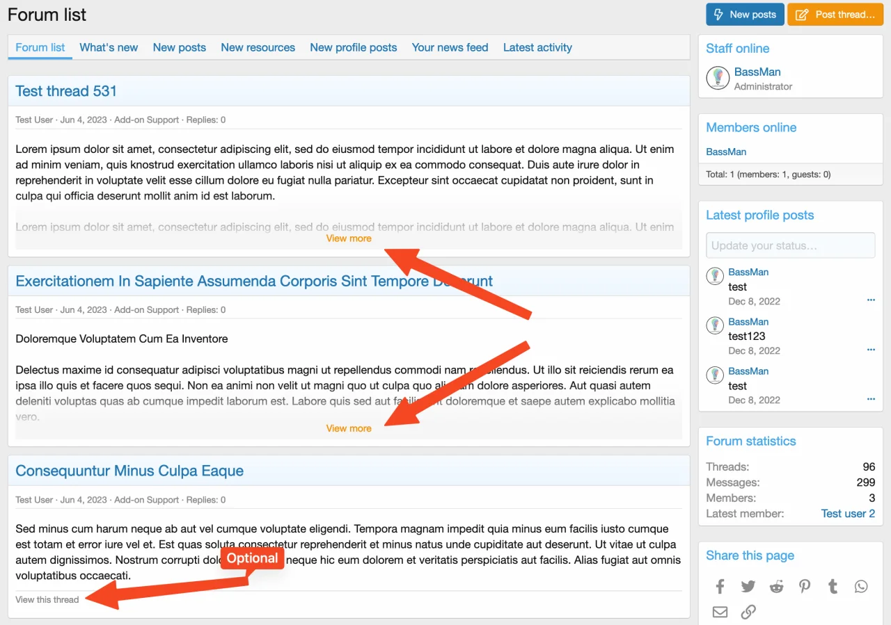 Используйте виджет «Новые темы» с расширенной опцией и некоторыми дополнительными функциями. При отображении виджета «Новые темы» с расширенной опцией для более длинных сообщений доступна расширяемая ссылка «Показать больше».
