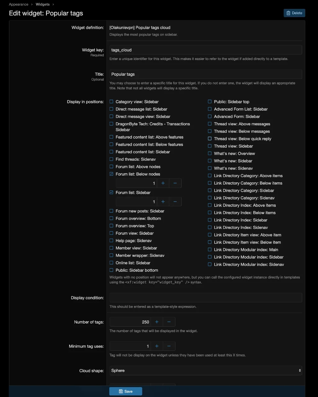 Этот плагин позволяет добавлять популярные теги на ваш форум в 3D-виде.