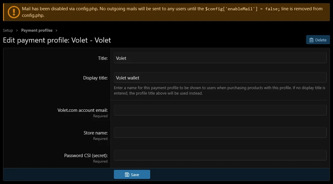 [DCom] Payment Volet - Плагин позволяет создавать платёжные инструменты с помощью Volet.