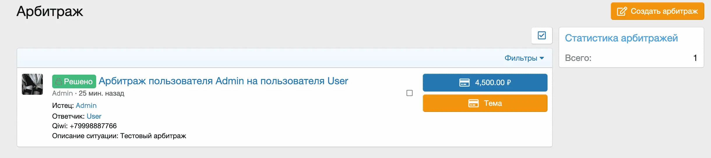 - Выбор пользователя отвечающего за арбитражи и черного списка