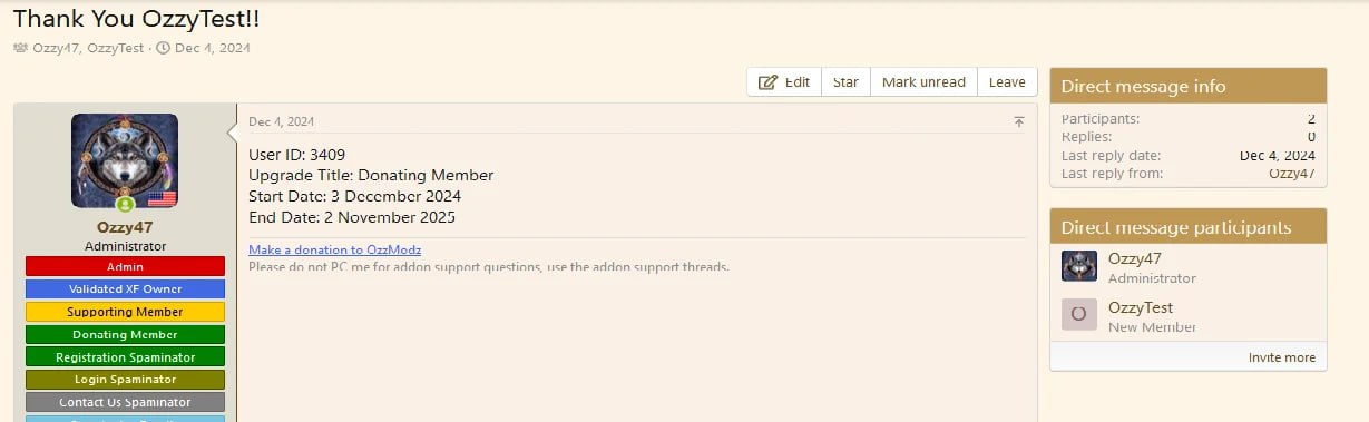 [OzzModz] Direct/Private Message Last Read Time - дополнение покажет, когда пользователь в последний раз читал свою переписку / прямое сообщение