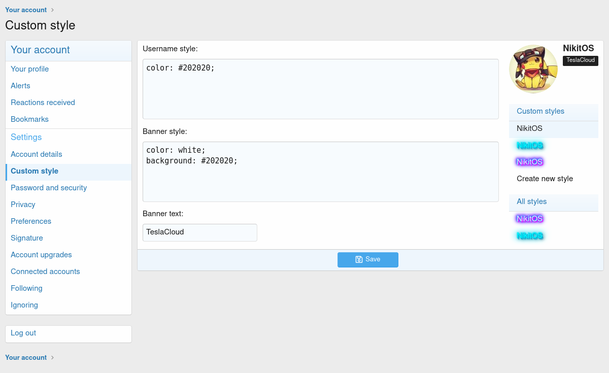 [TC] Custom User Style - Позволяет пользователям приобретать пользовательский стиль для имени пользователя и баннера