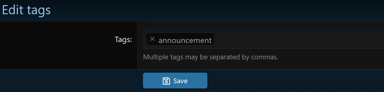 Этот плагин позволяет администраторам добавлять теги по отдельности.