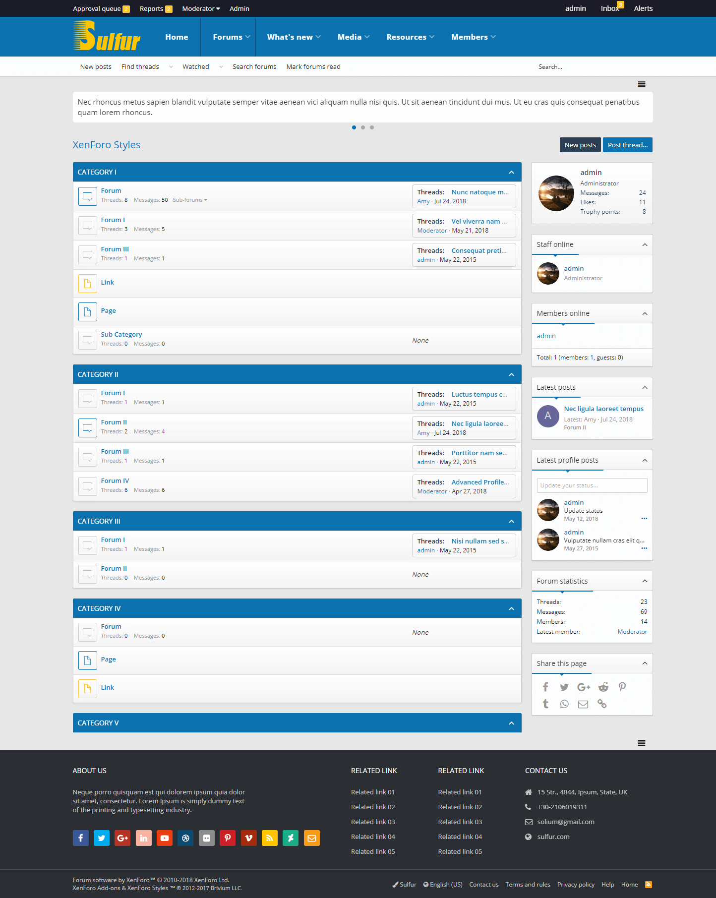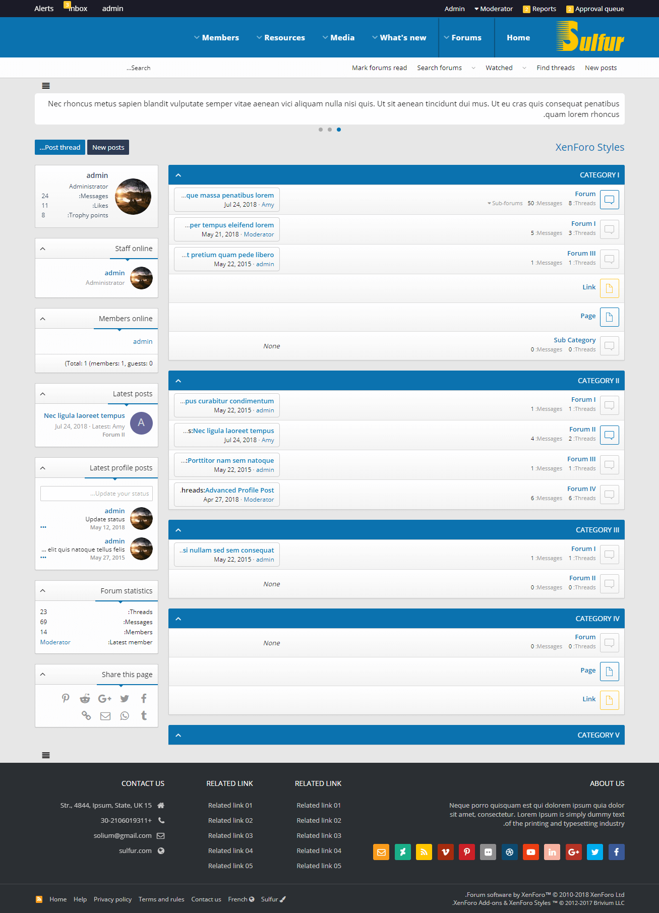 Sulphur - это 10-я бесплатная модель XenForo 2, разработанная компанией Brivium, плоская, современная и простая.