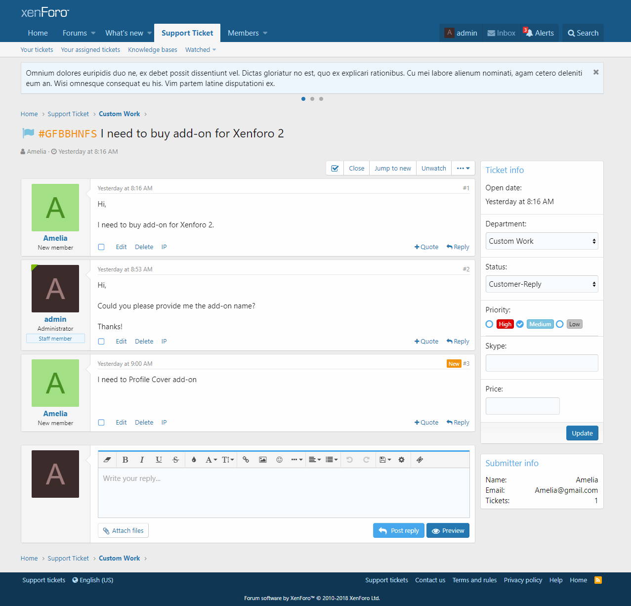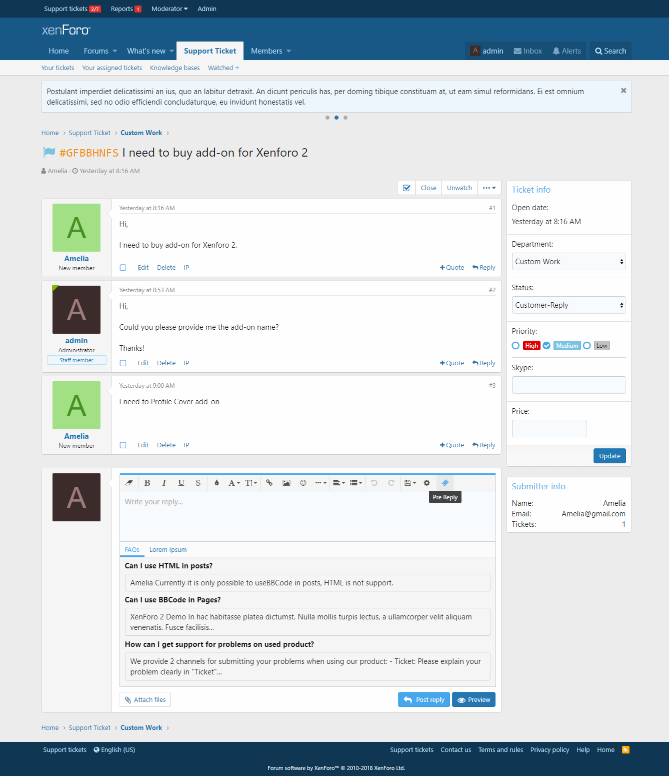 Отличный плагин который добавит систему тикетов со множество функции и удобную базу знаний куда вы сможете добавить информацию для пользователей.