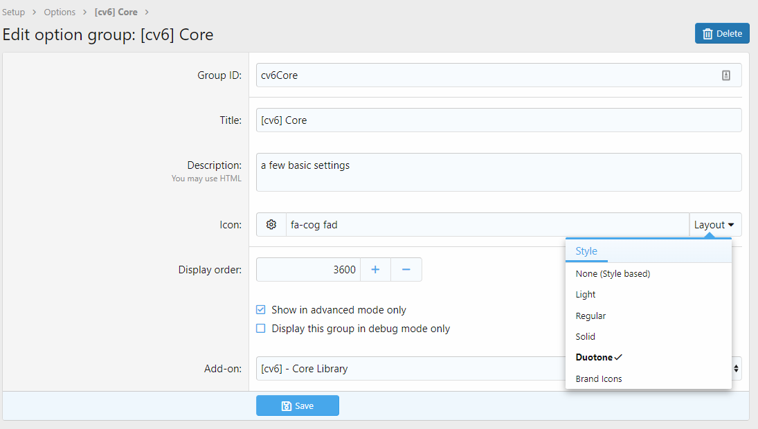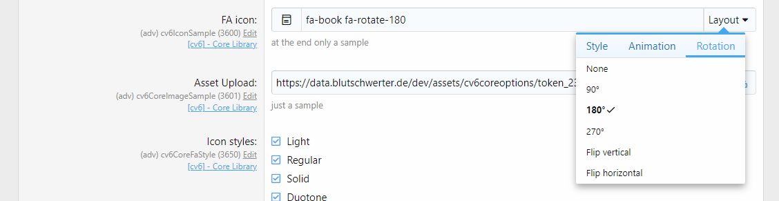 - Шаблон для выбора значка FontAwesome с помощью меню