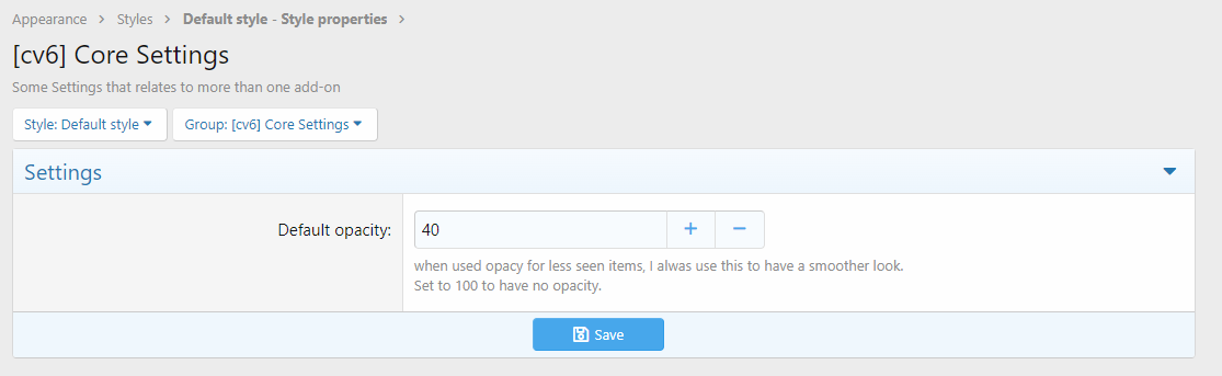 - центральная настройка непрозрачности (по крайней мере, для всех дополнений cv6)