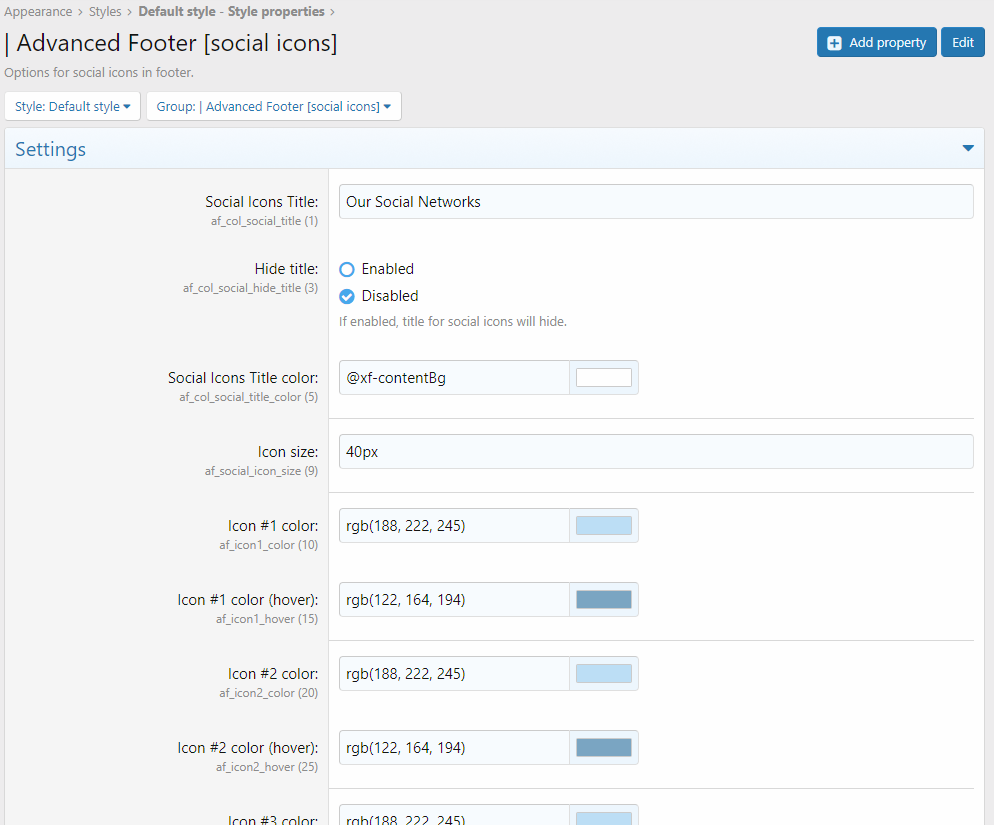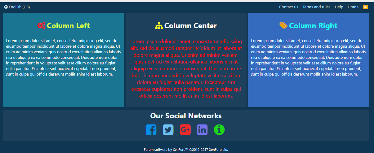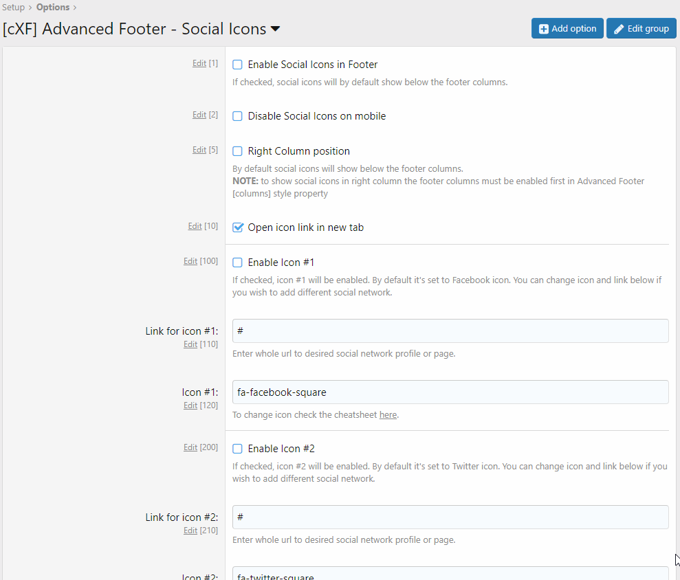 - добавить любые значки социальных сетей в нижний колонтитул в качестве дополнительного 4-го столбца в правом нижнем колонтитуле или под ним (в настоящее время до 6 значков)