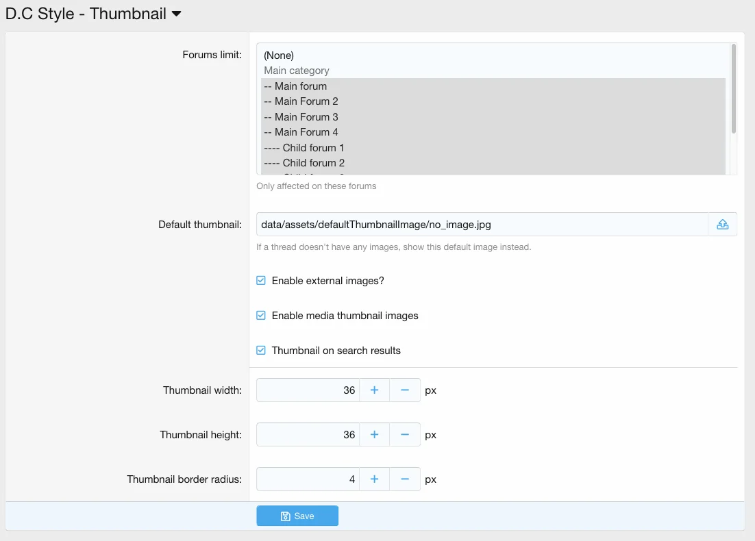 - Настраивайте миниатюры для каждой темы. Поддерживает прикрепленные изображения, внешние изображения и миниатюры из видео на YouTube, Vimeo и Dailymotion (обновление...).