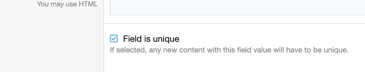 Добавлена возможность присвоения настраиваемому полю значения "уникальный", при котором любой новый контент со значением этого поля должен быть уникальным.