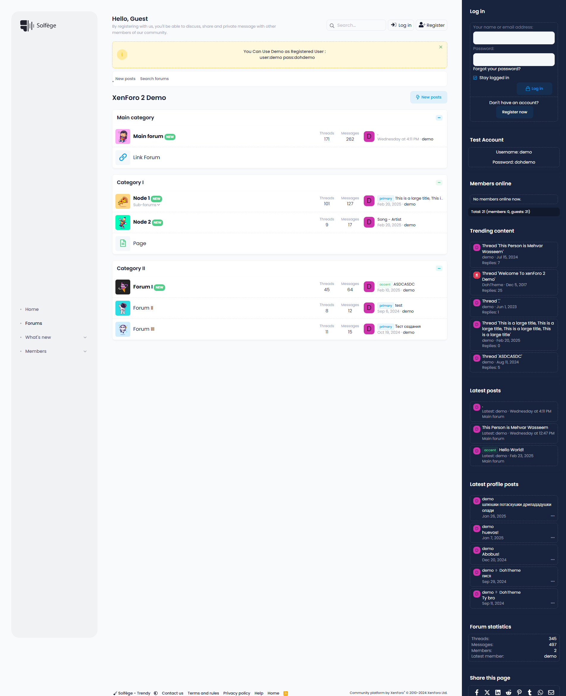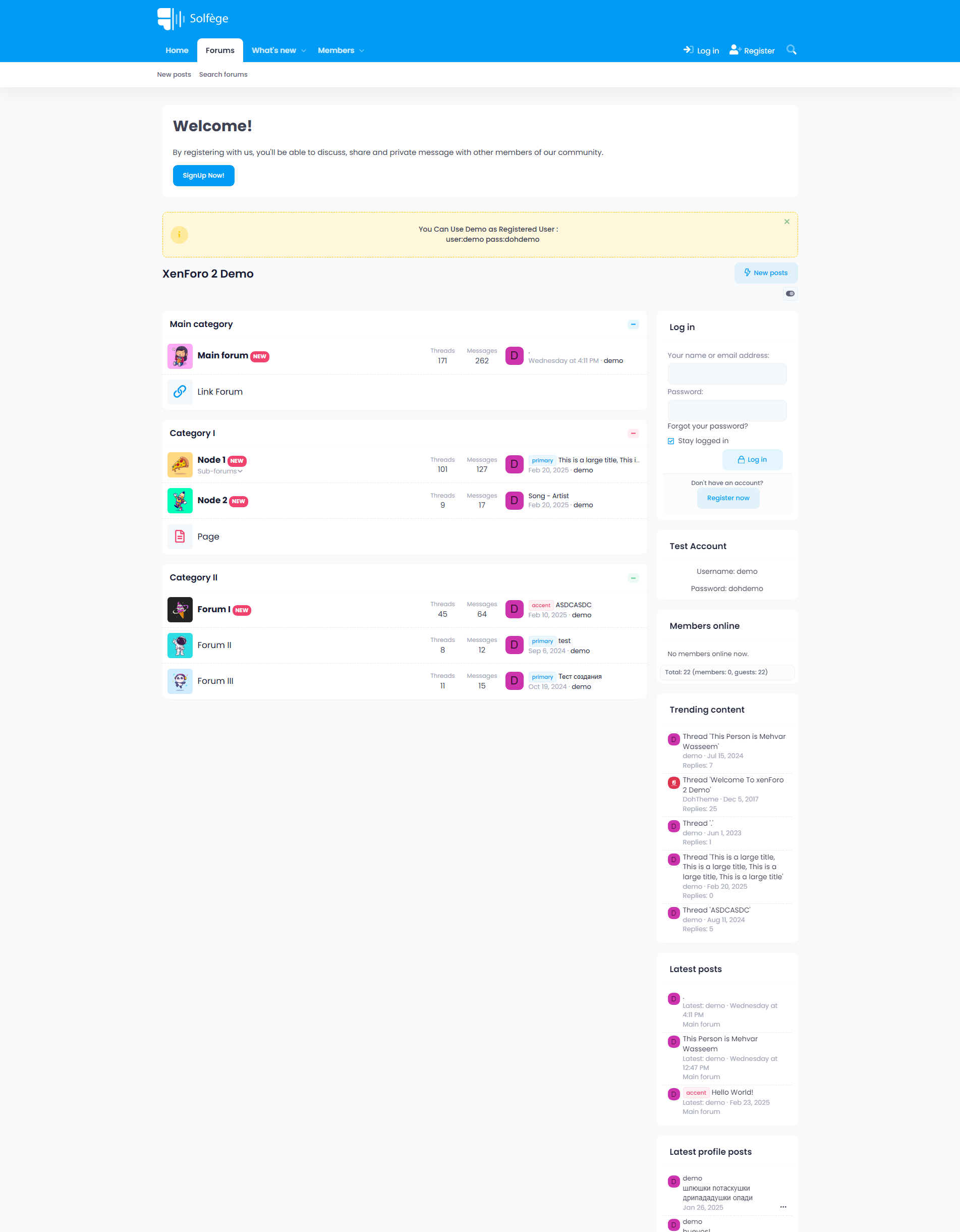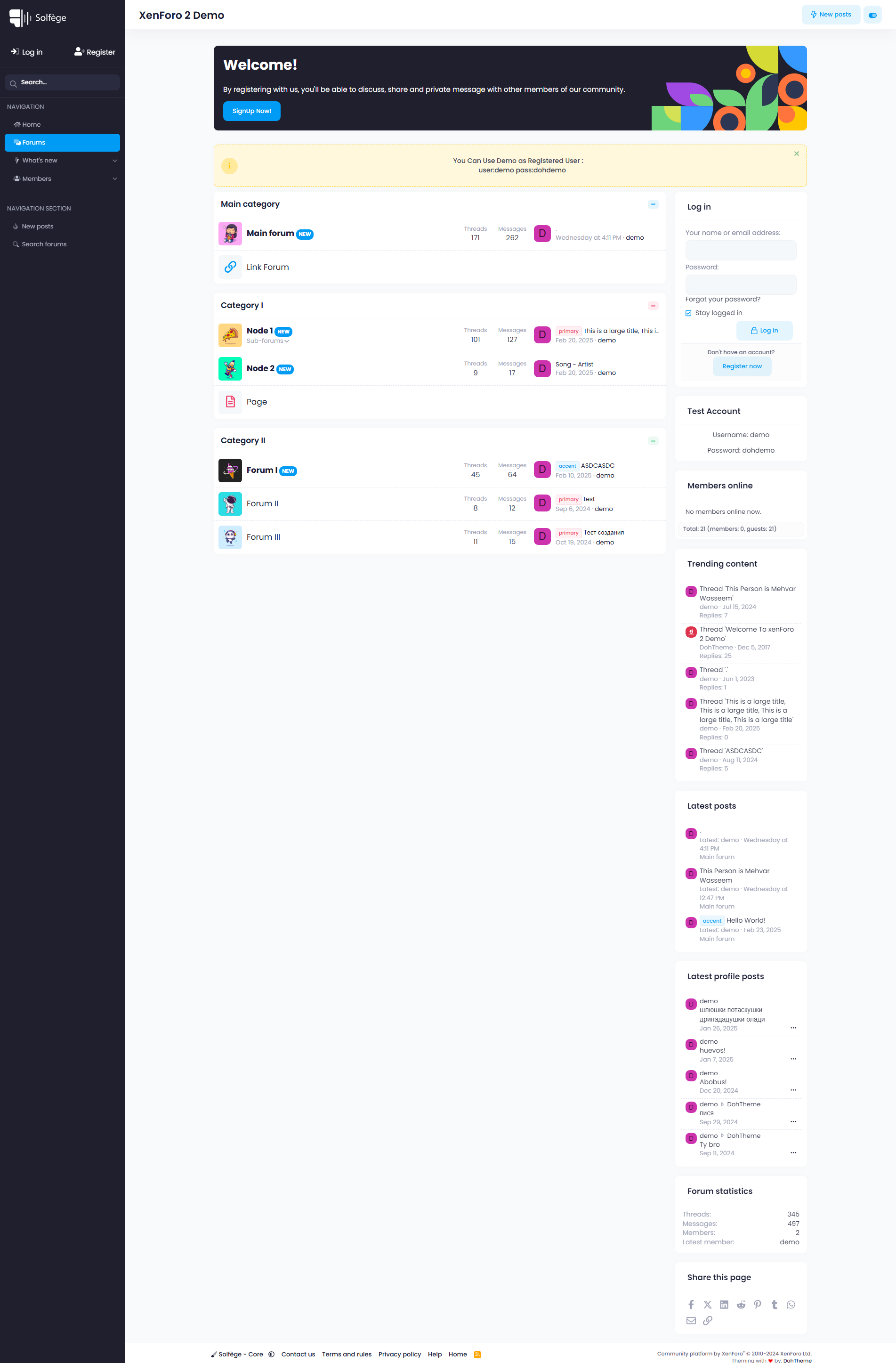 Solfège” - это САМЫЙ БОЛЬШОЙ набор страниц XenForo themes, когда-либо созданный на XenForo, включает в себя + 8 СОВЕРШЕННО РАЗНЫХ макетов тем с одним и тем же содержимым, что позволяет создавать мощные страницы с неограниченными возможностями.