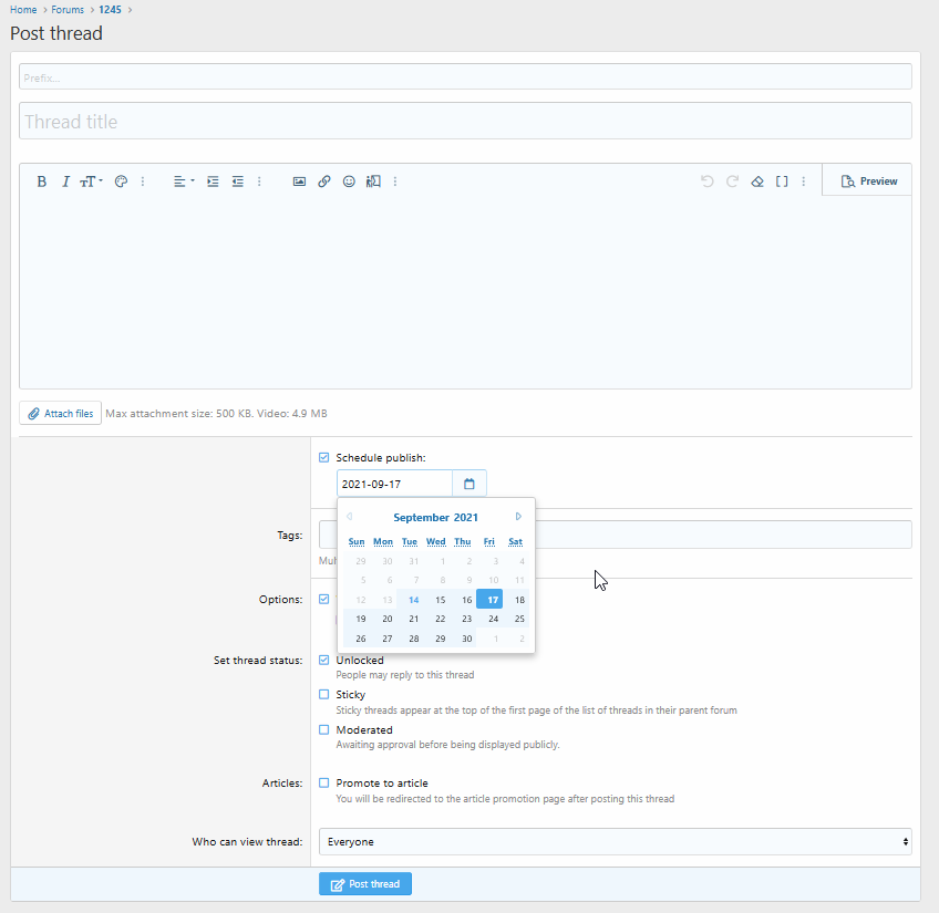 • Автоматическая публикация: установите конкретную дату, когда контент станет доступен пользователям.