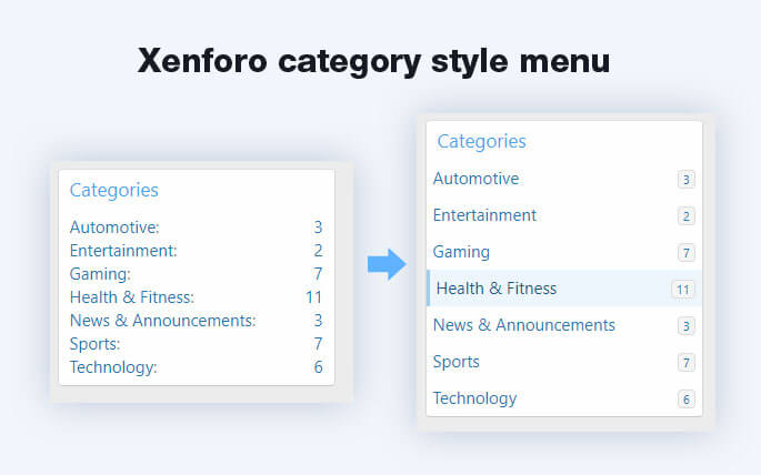 - Изменяет виджет категорий, чтобы использовать внешний вид меню Xenforo accordion