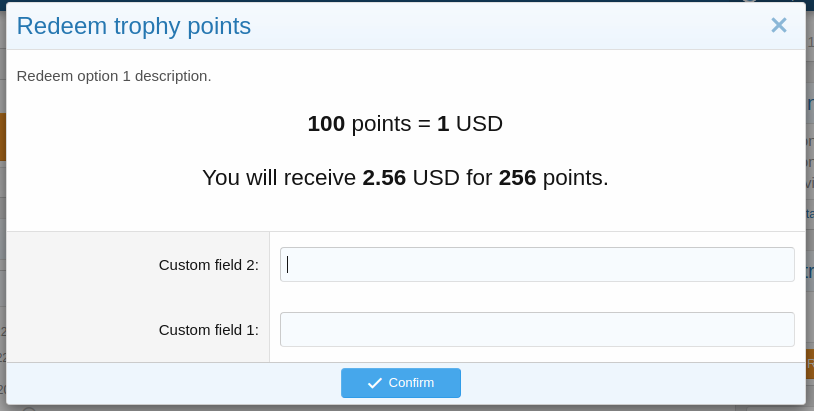 Это дополнение может добавить полезности трофейным баллам, благодаря которым пользователи смогут обменять свои трофейные баллы на что-то другое или пожертвовать свои трофейные баллы другим участникам.