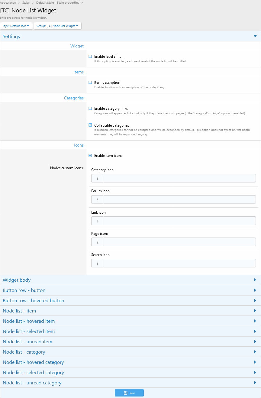 - Настройка внешнего вида текущего узла (на странице категории, форума или темы)