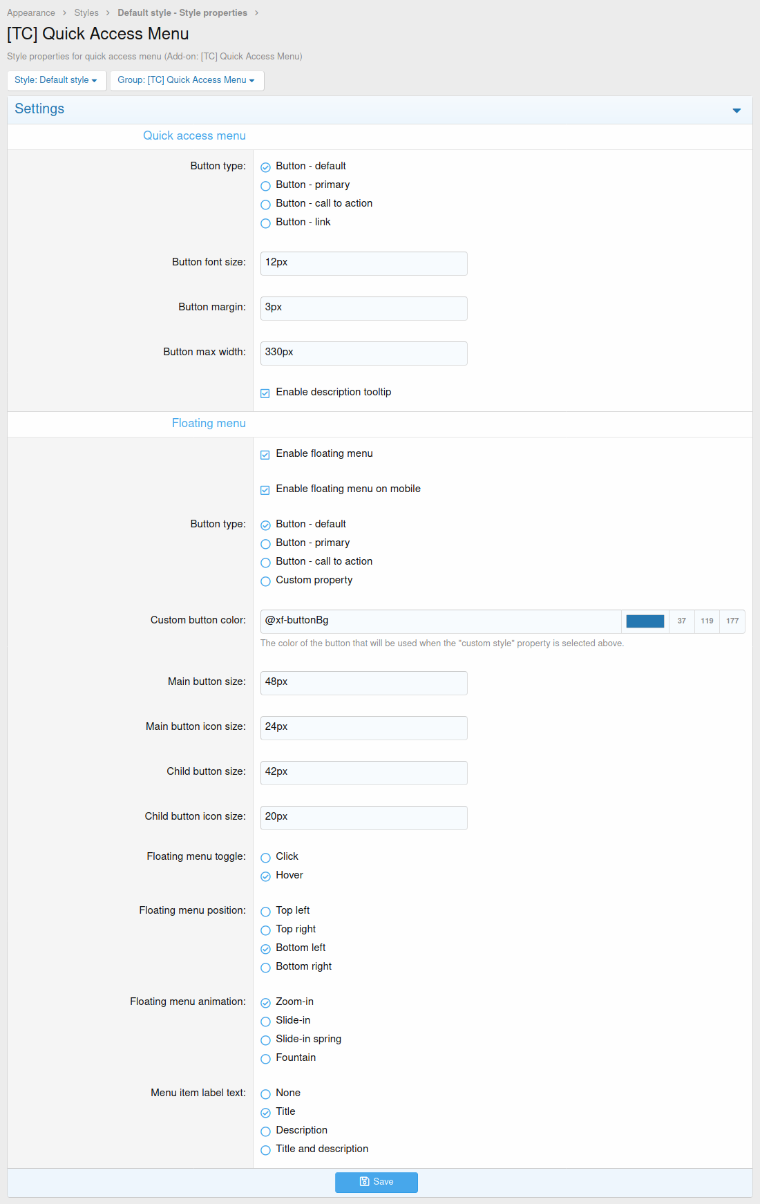 - Добавление плавающего меню с выбранным набором пунктов меню