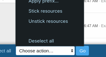 - Закрепление / открепление ресурсов через опции ресурсов или встроенной массовой модерации