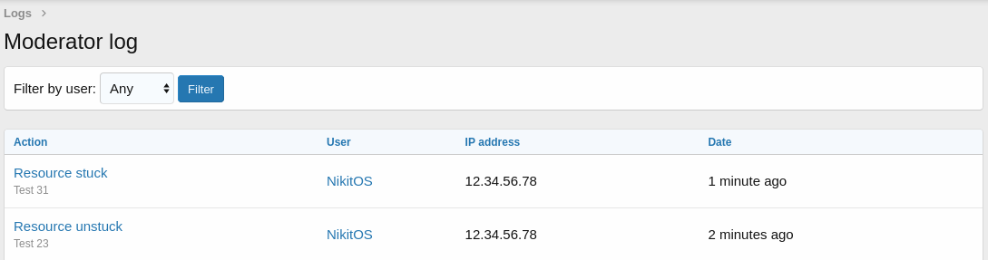 - Журналирование закрепления / открепления ресурсов модераторами
