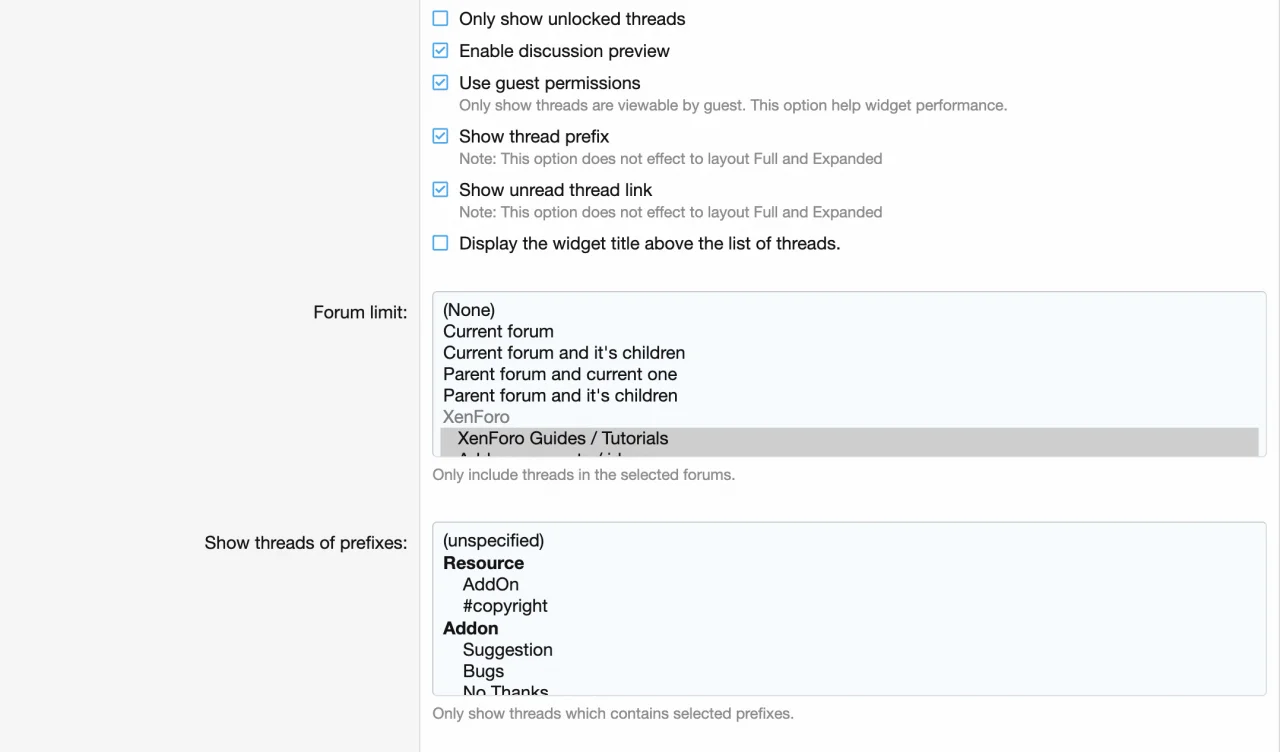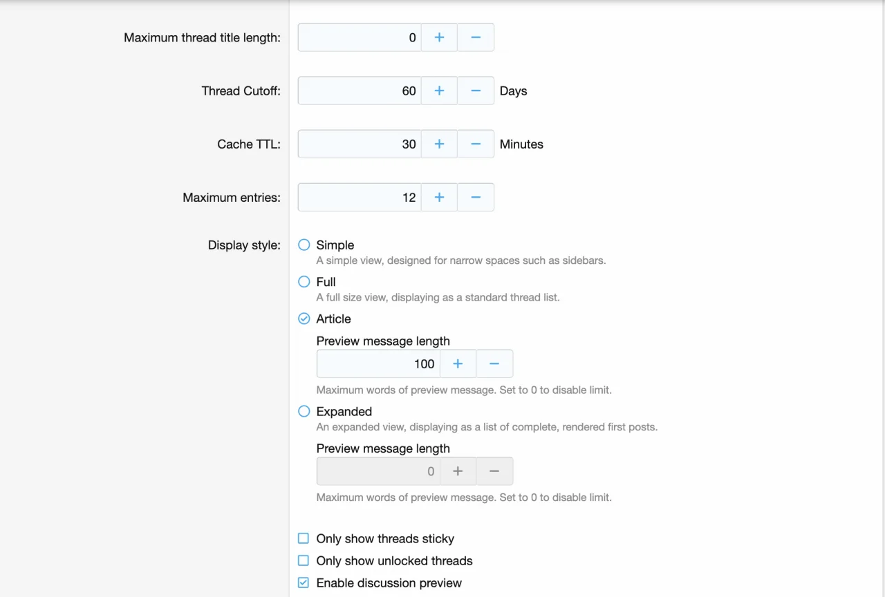 В дополнение к существующим стилям отображения вы можете создавать собственные виджеты для отображения, которые будут соответствовать стилю вашего форума и обеспечат ещё более персонализированный пользовательский опыт для ваших посетителей. Эта функция позволяет вам полностью контролировать внешний вид отображения ваших тем и сделать его уникальным для вашего форума.
