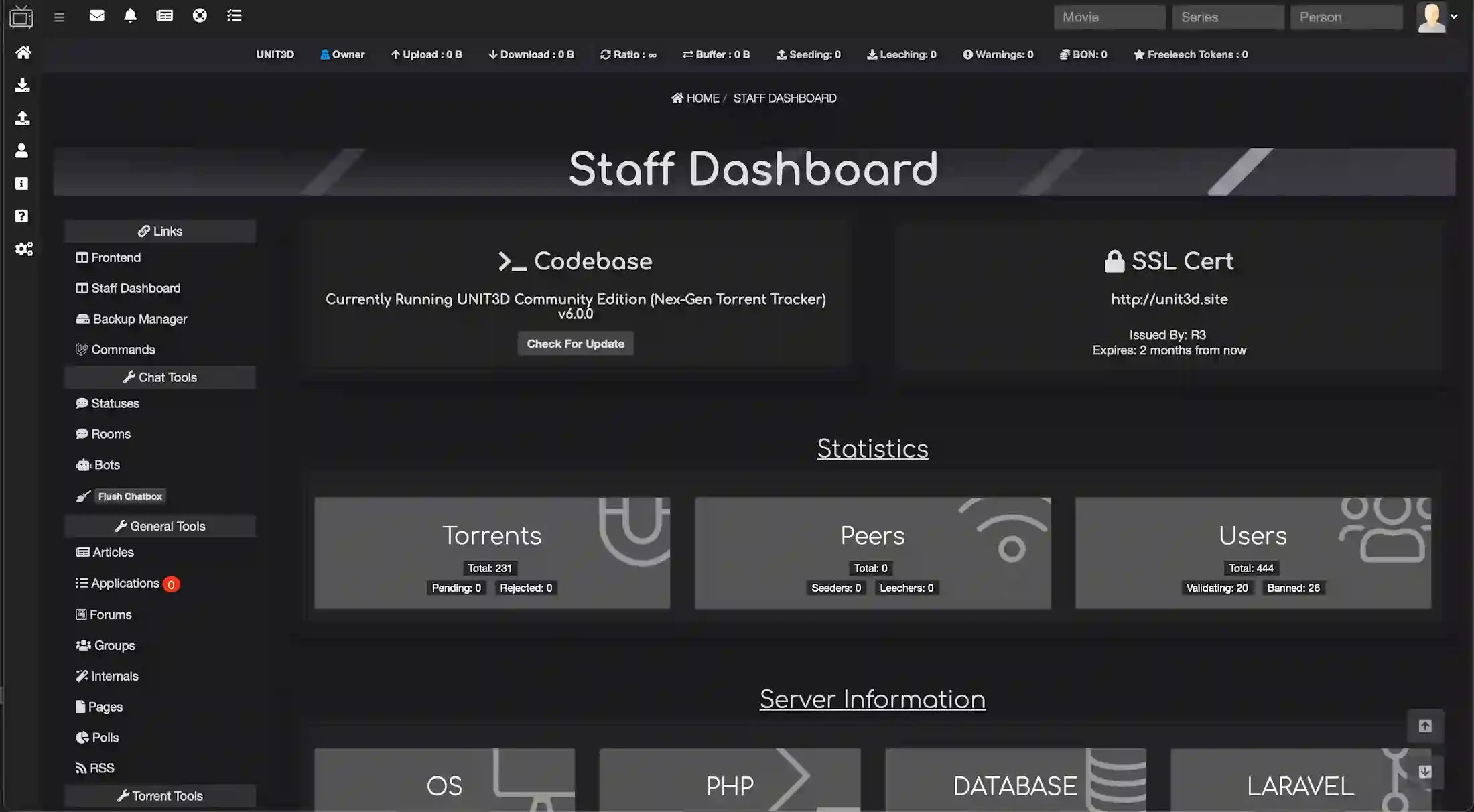 В настоящее время UNIT3D предлагает следующие функции: