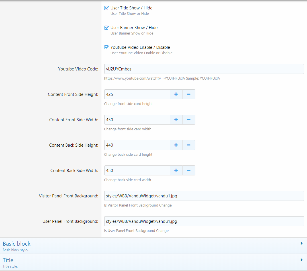 5. Передняя панель пользователя, заголовок пользователя, баннер пользователя и видео/ включить или отключить настройки.