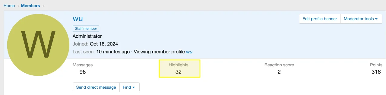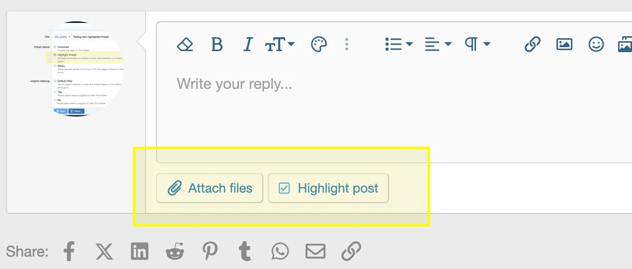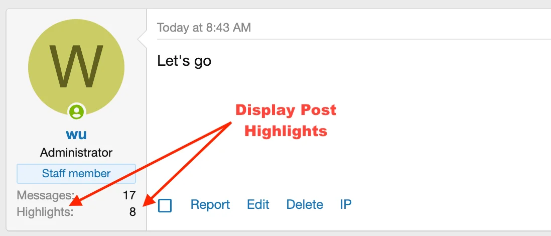 Разрешить выбранным группам пользователей выделять важные сообщения или темы. Многочисленные параметры отображения, включая ссылку на счетчики выделений пользователя для всего их выделенного контента.