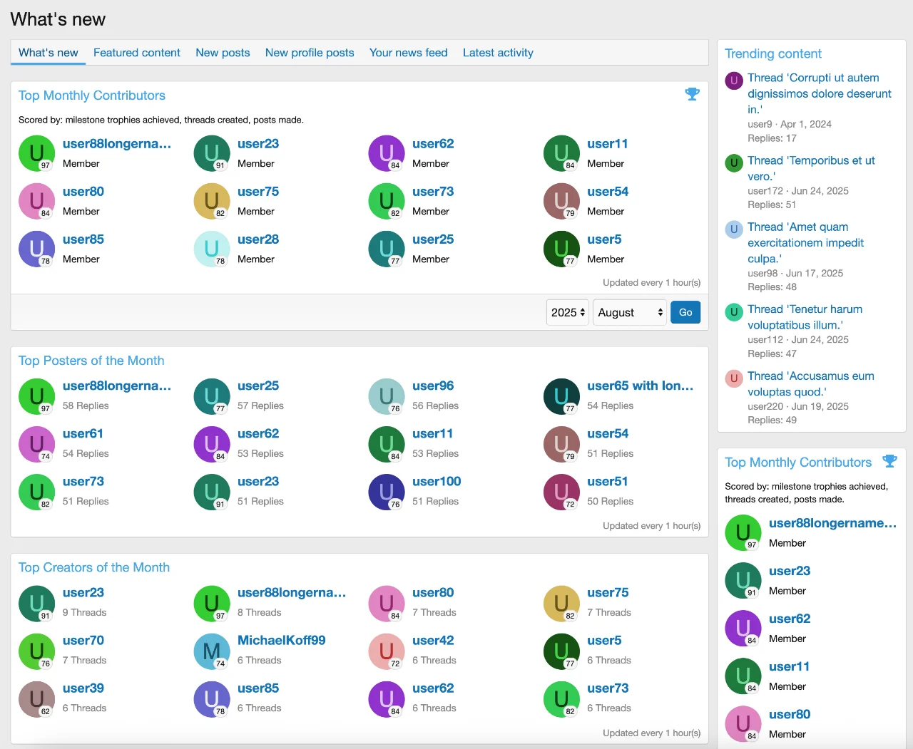 Вдохновленный ныне не поддерживаемым топ-постером месяца от @au lait, этот плагин представляет собой современную замену, которая устраняет все известные проблемы и обеспечивает поддержку XenForo 2.3.6 (а также 2.2.16).
