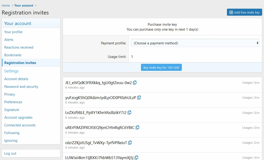Гости и пользователи с разрешением могут приобретать коды приглашения через платежных провайдеров XF.