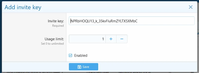 Настройте использование и разрешения на создание ключей приглашения для дополнительной гибкости.
