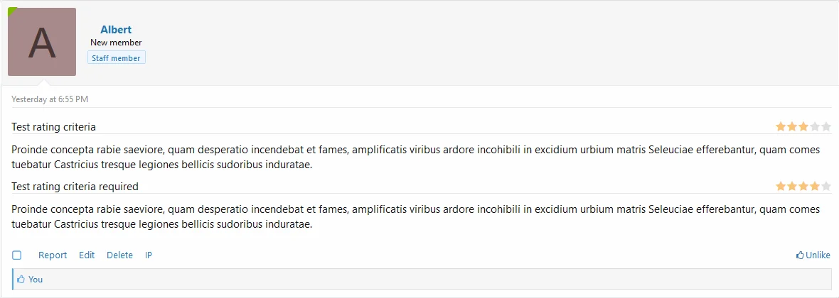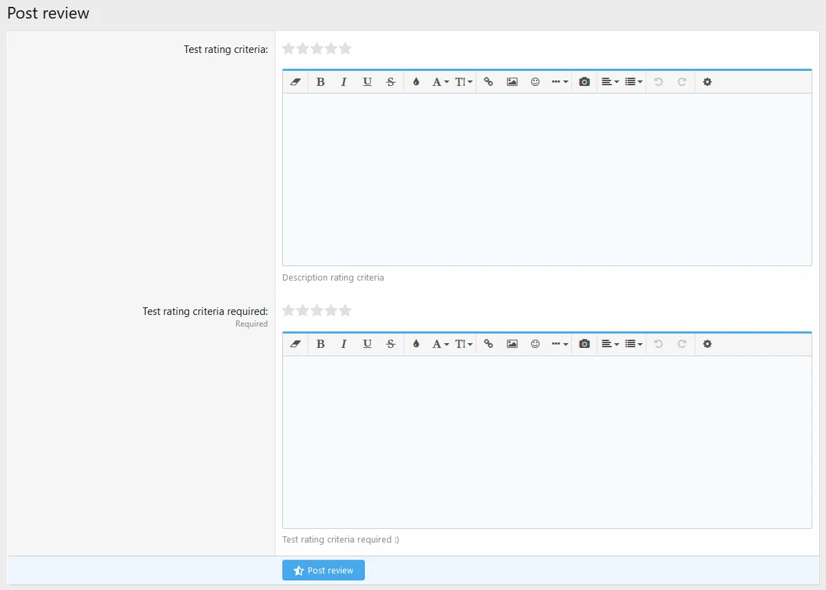 Вы можете создавать неограниченные критерии оценки. Это позволит пользователям оценивать предоставляемые вами услуги.