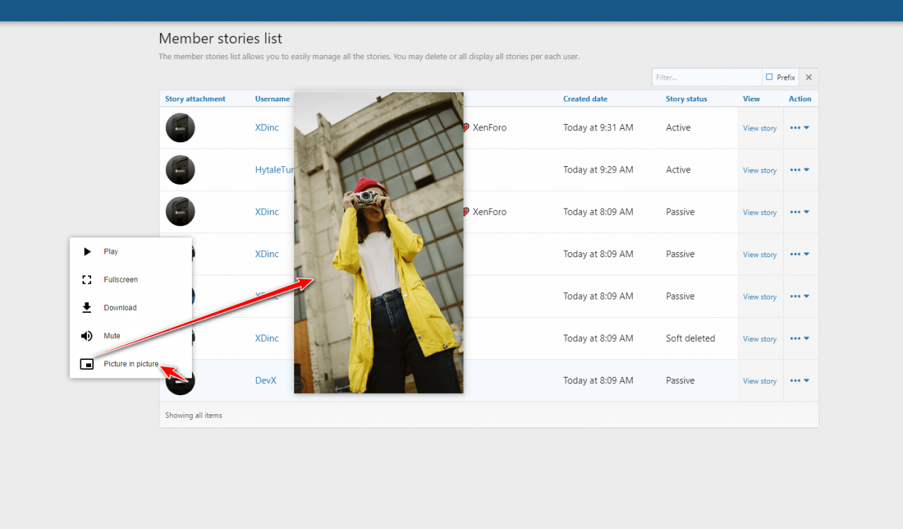 - “Истории участников” - это дополнение для XenForo, которое позволяет пользователям быстро делиться "моментами" своего дня, публикуя последовательность изображений и видеоролики продолжительностью "Х" секунд.