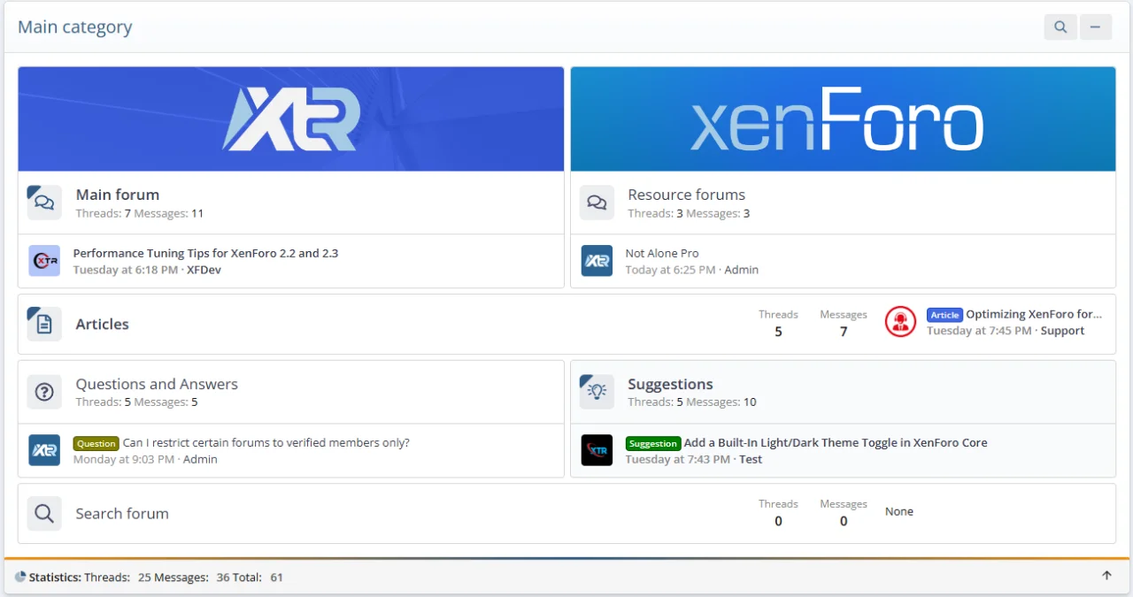 • Сворачиваемые категории: пользователи могут сворачивать и разворачивать категории форума, чтобы сосредоточиться на интересующем их контенте.