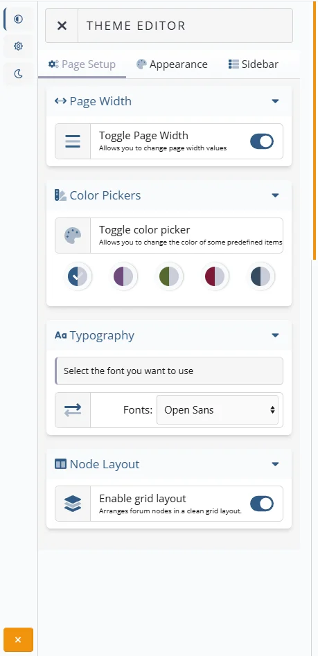 С помощью мощного редактора тем Zenith вы можете легко настроить множество функций, от цветовых палитр и шрифтов до ширины страниц и макетов узлов. Этот редактор позволяет создать уникальный дизайн форума и предлагает персонализированный интерфейс, соответствующий потребностям вашего сообщества.