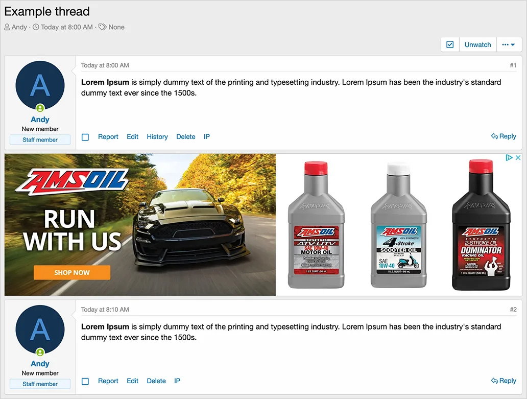[AndyB] Ad below post - Отображает рекламу под выбранными публикациями