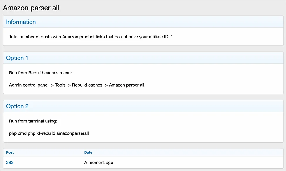 Надстройка Amazon parser all обновит существующие ссылки на Amazon, добавив ссылки, содержащие ваш идентификационный номер партнера Amazon. Это дополнение будет просматривать каждое сообщение на вашем форуме и обновлять ссылки на Amazon.