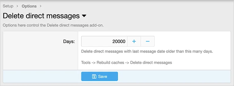 - Обновите страницу "Параметры удаления прямых сообщений". Например, введите 5000 в поле "Дни", чтобы удалить все прямые сообщения старше...