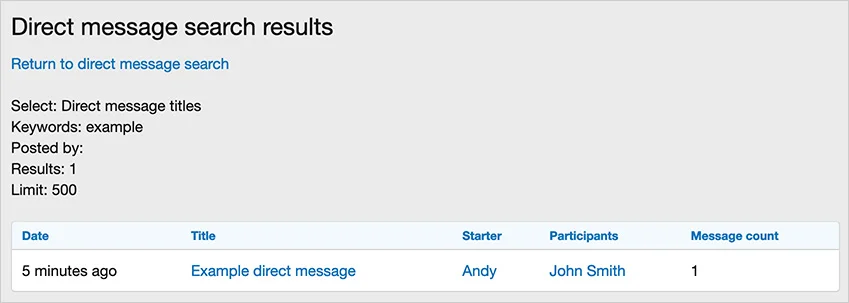 Пример страницы результатов поиска прямых сообщений