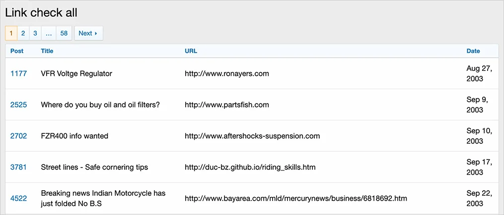 [AndyB] Link check all - Проверяет ссылки во всех сообщениях и отчетах, которые возвращают код состояния HTTP 404