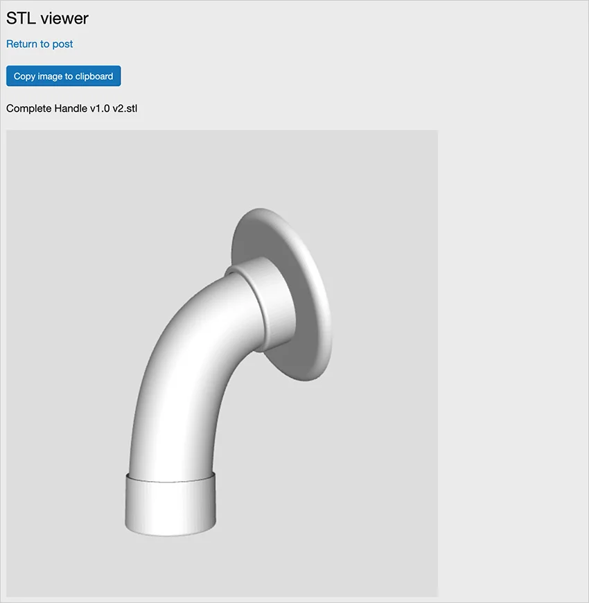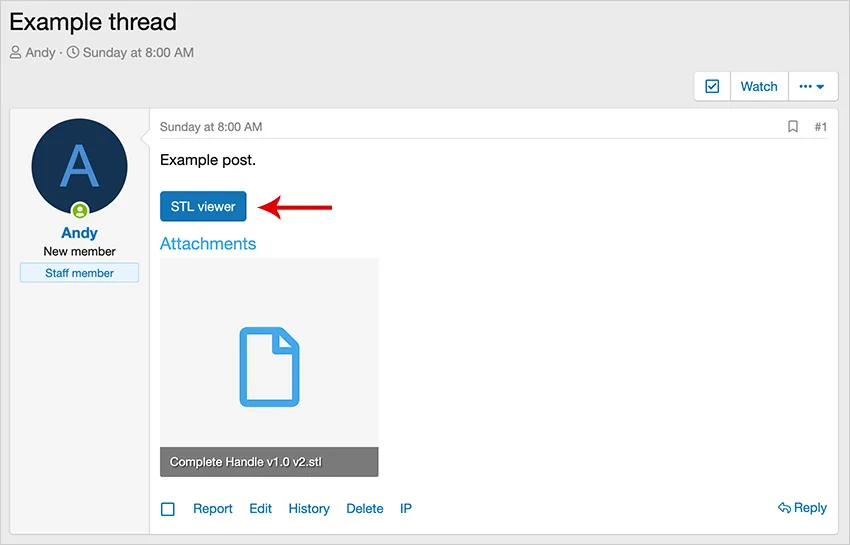 После сохранения поста с вложением .STL кнопка просмотра STL автоматически вставляется.