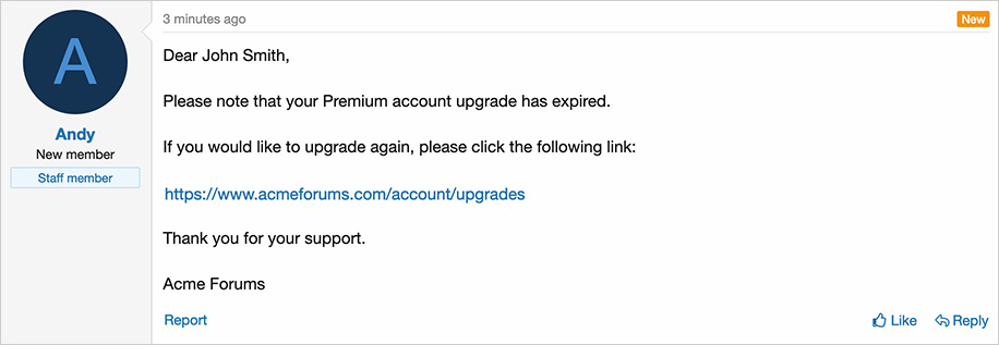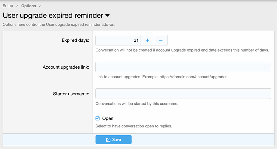 User upgrade expired reminder - Создает беседу, когда истек срок действия обновления учетной записи участника.