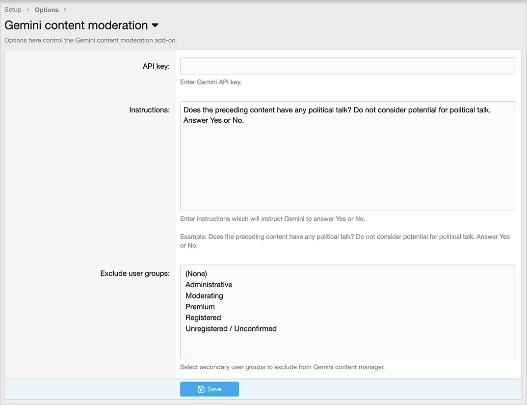 Gemini content moderation - Обеспечивает автоматическую модерацию контента с помощью искусственного интеллекта Gemini.