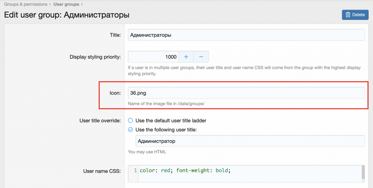 Отображение в сообщениях – иконки рядом с ником пользователя