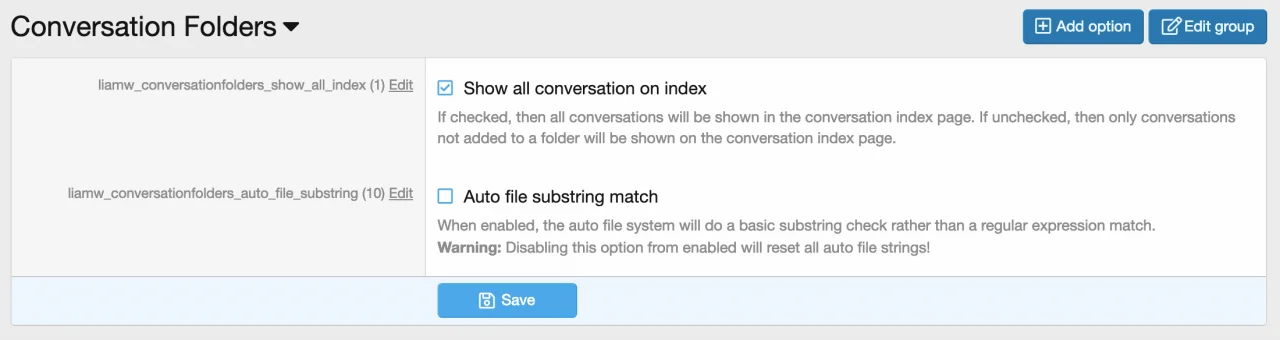 [Liam W.] Conversation Folders - позволяет разделять личные разговоры, проводимые через форум, в виде папок.