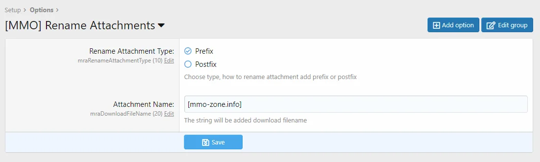 [MMO] Rename Attachments - Это дополнение позволяет вам добавлять префикс или постфикс к вложениям
