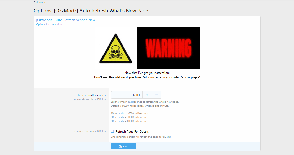Не используйте это дополнение, если у вас на страницах "Что нового" есть реклама AdSense!