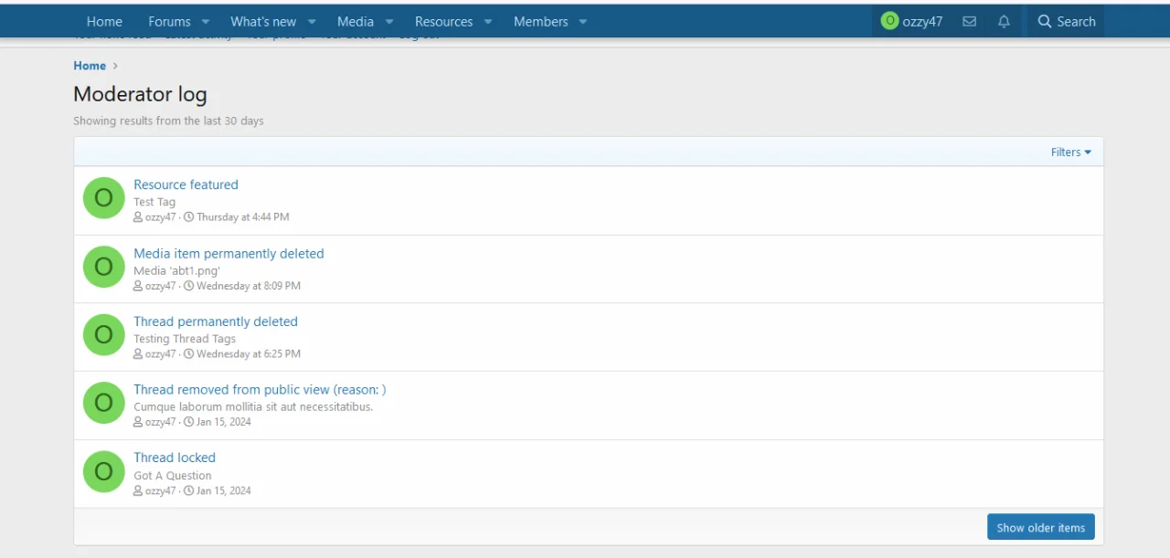 [OzzModz] Front End Moderator Log - позволяет показывать журнал модератора администраторам форума, имеющим определенные разрешения