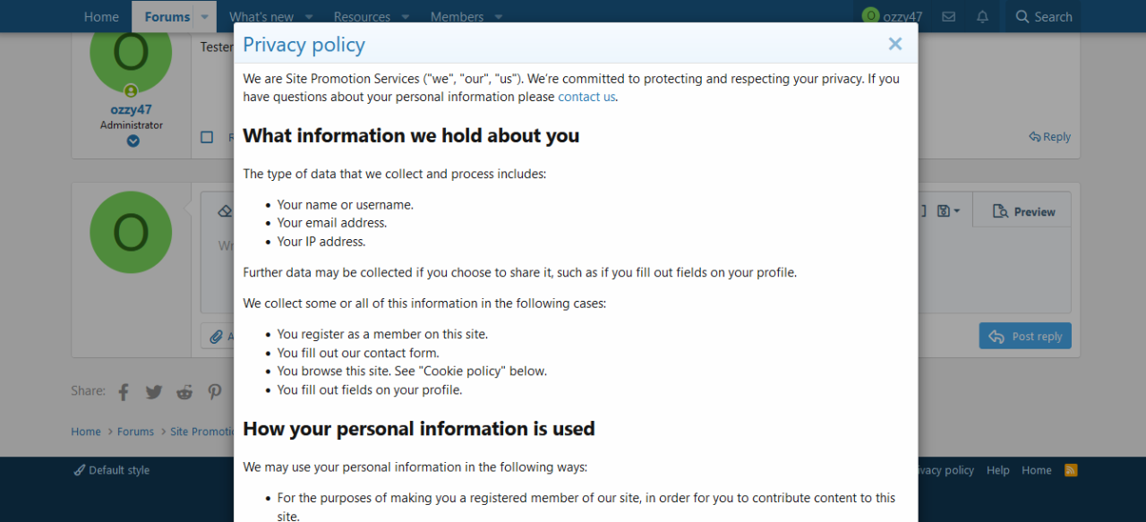 [OzzModz] Privacy Policy Popup - Открывает политику конфиденциальности во всплывающем окне