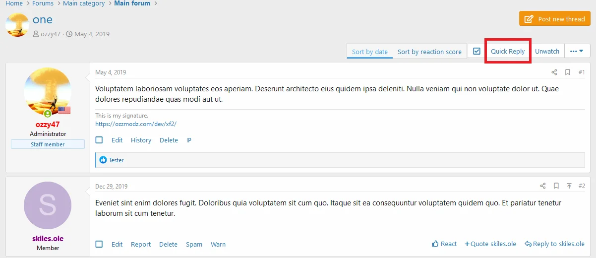 [OzzModz] Quick Reply Button For Threads - Кнопка быстрого ответа в верхней части темы