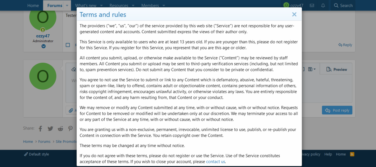 [OzzModz] Terms And Rules Popup - Открывает условия и правила во всплывающем окне