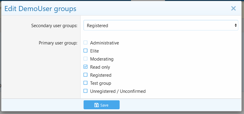 Позволяет модераторам редактировать группы пользователей-участников с разрешения в общедоступном интерфейсе и с некоторыми ограничениями.